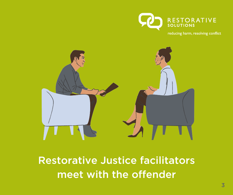 This infographic shows the process of Restorative Justice. Although each case will be different, there are a few steps that our facilitators take to make sure that the victim is comfortable and safe throughout the process. Read about the Restorative Justice process in more detail in our recent blog post.